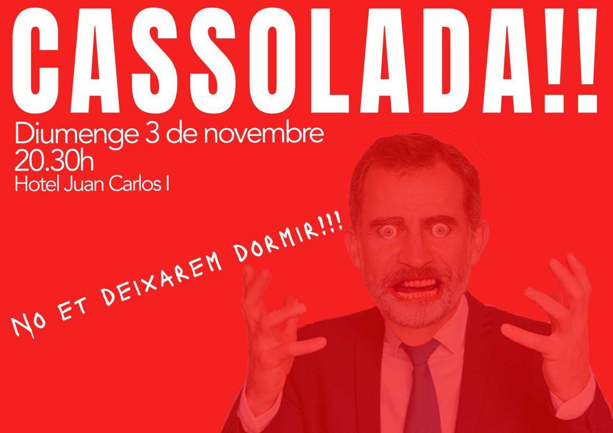 The return of the #cassolada for the Spanish king in Barcelona tomorrow night outside the Hotel Juan Carlos.
