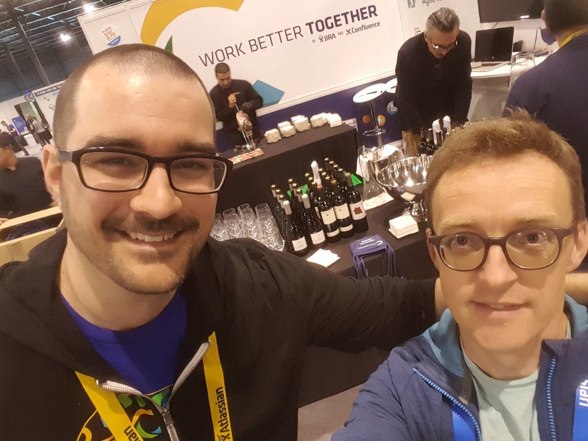 At the #AtlassianSummit with #comalatix - they've turned their stand into a wine bar with Jamón. Nice.