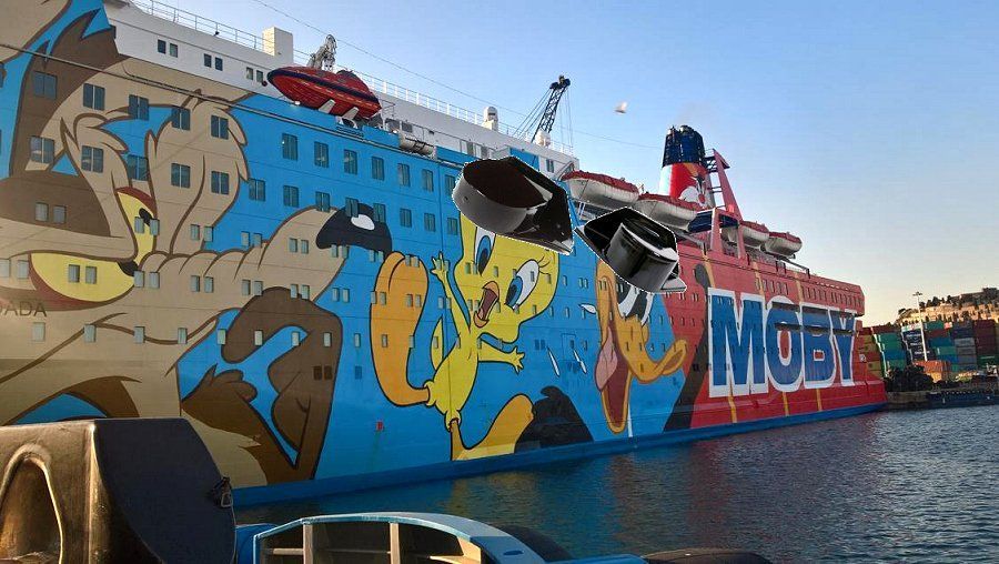 One of the ferry boats in Barcelona port where the extra Spanish police drafted in for the #CatalanReferendum are quartered. Not a joke.