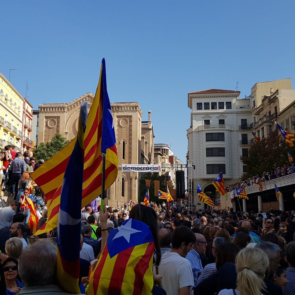 Support for democracy in Lleida today, one week ahead of the #CatalanReferendum. #Votarem