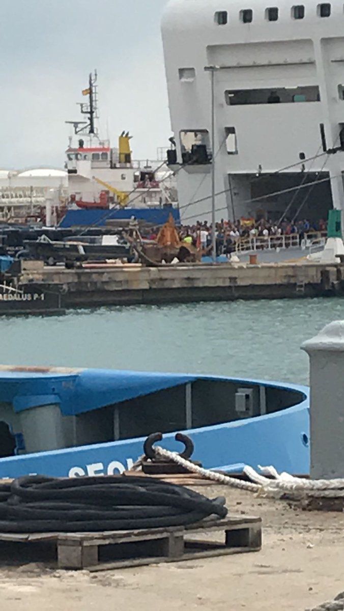 Plainclothes policia coming off their boat in Barcelona port on their way to infiltrate tonight's protests, aiming to provoke violence.