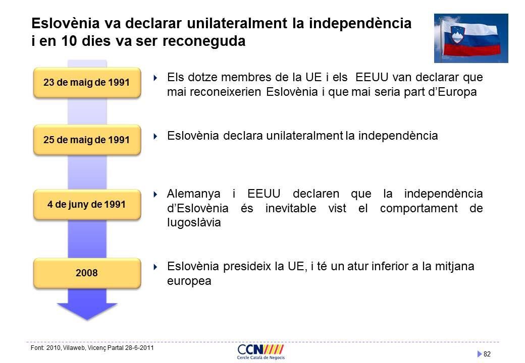 Slovenian independence 1991: 23 May EU & US say they won't recognise +2 days Slovenia declares independence +12 days Germany & US recognise