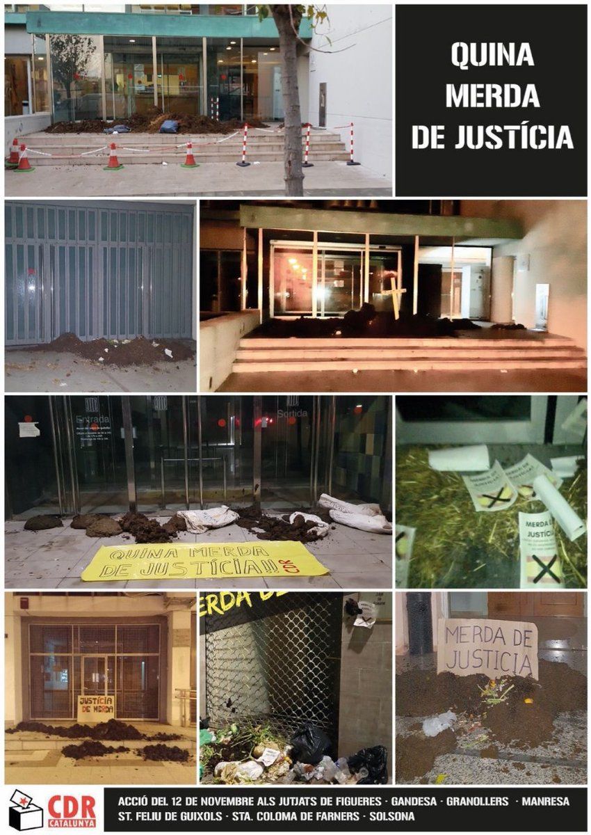 yesterday, dumping manure on the steps of various courts of 'justice' around Catalonia. #QuinaMerdaDeJusticia