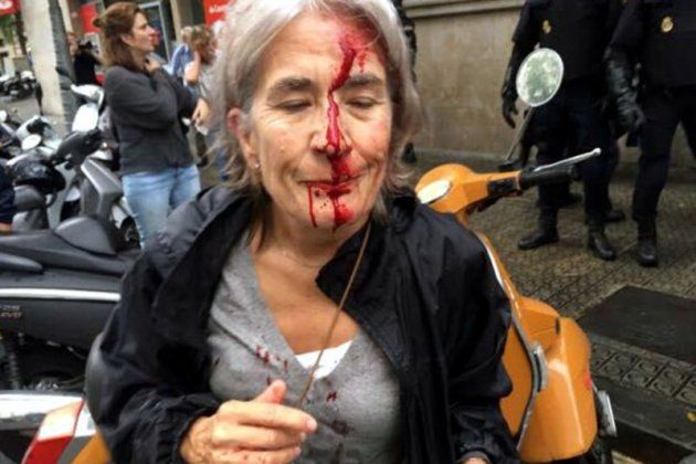 One of the officers is seen in this clip at the Pau Claris institute on Barcelona. He says that 'the woman in question fell due to the force and inertia of him trying to lift her up.' youtu.be/BSyvZ79ZPUI